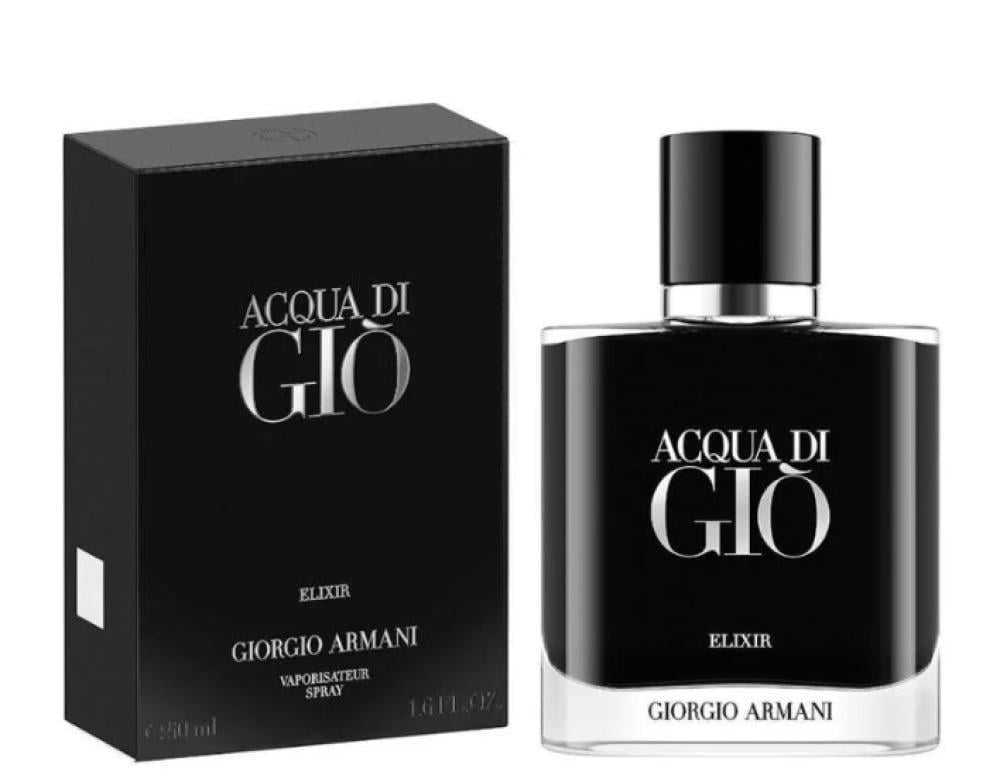 • Acqua di Giò Elixir هو إصدار حديث من مجموعة Acqua di Giò الشهيرة، ويأتي في زجاجة أنيقة باللون الأسود.