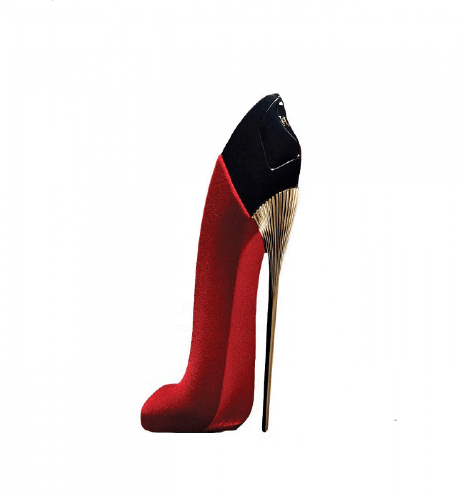 يأتي العطر في زجاجة فاخرة على شكل حذاء كعب عالٍ، مغطاة بالمخمل الأحمر والتفاصيل الذهبية.