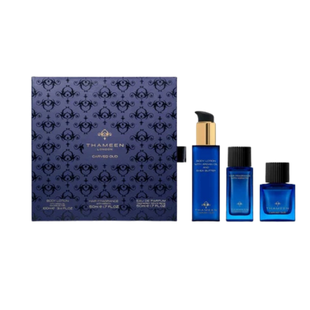 مجموعة ثَمين لندن كارفِد عود - إكسترايت دي بارفيوم 50 مل + معطر شعر 50 مل + لوشن جسم 100 مل