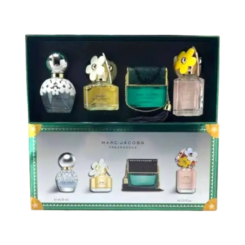 سواء كنتِ في العمل أو سهرة خاصة، هذه المجموعة تمنحك حرية الاختيار بين أربع روائح أيقونية من مارك جاكوبس، كل واحدة منها بحجم عملي يناسب الحقيبة أو السفر.